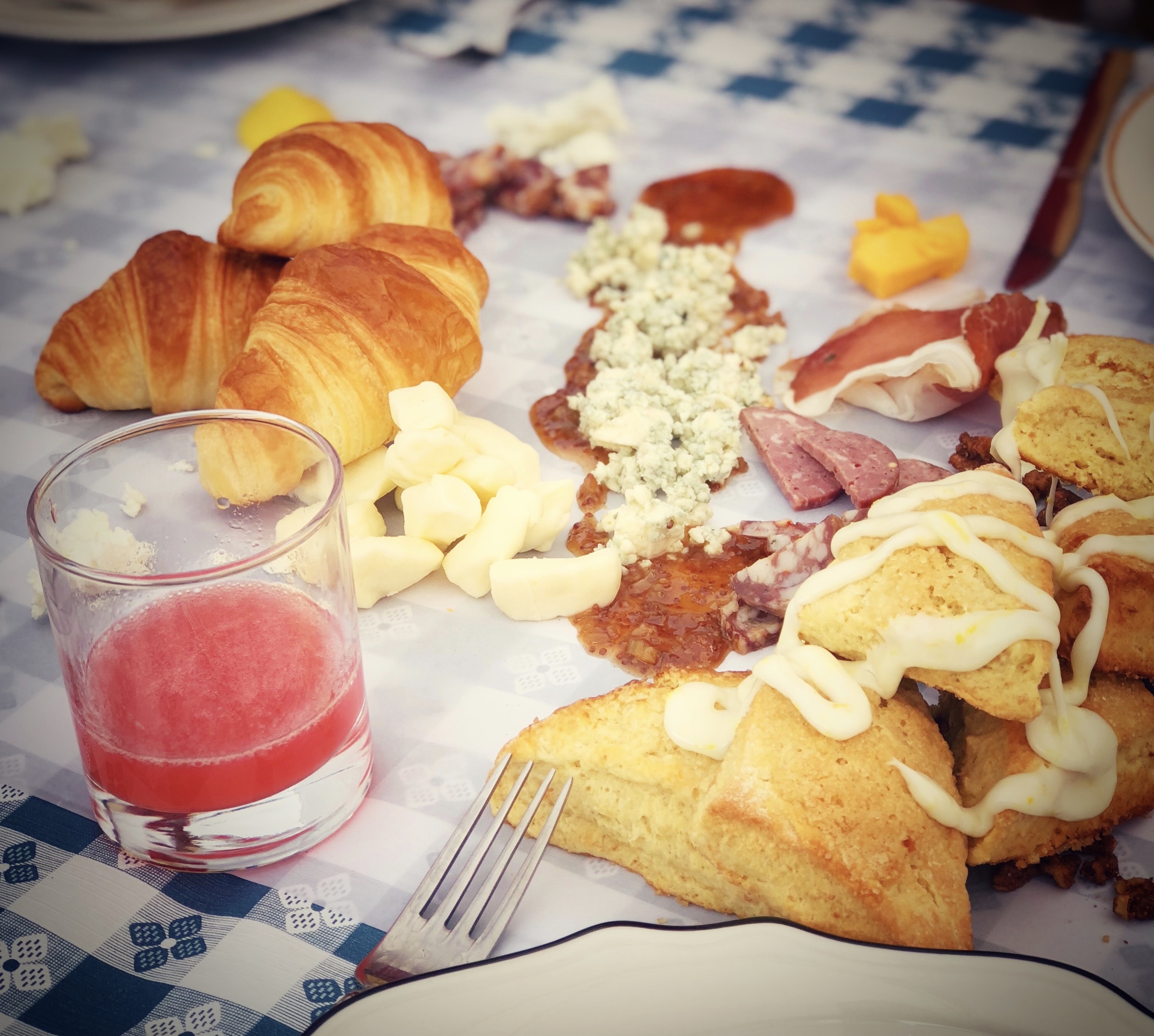 Now for our amazing brunch. All of the food we consumed at this event was from local farmers and cooked by a local chef, Jacob Cheathman. I can’t tell you how special that is now a days with the type of food we are offered. To truly have farm fresh food directly to your table is an awesome thing to experience and you can really tell the difference in taste and quality. Our meal started out with a charcuterie spread in the middle of the table. It was spread to be shared with everyone served on parchment paper running down the table. The ultimate sharing experience and it was a fun way to get to know the people you were sitting close to. We all instantly connected like family through the act of sharing. After we devoured the first course they brought out a big plate of egg scramble with wild mushrooms and pulled pork on a bed of hash browns. I about died when I saw this big plate of food. Again we were sharing, spooning the food onto our plate and boy was it so delicious! Chef Jacob really knows what he is doing when it comes to pulled pork. After that they came out with sourdough french toast and rhubarb syrup. This was for sure my favorite. I could have eaten the whole plate! At this point we were all getting extremely full, the band started playing and people began to relax. They had Woodshed Red out to play and they are an awesome local country band. We refilled our drinks and socialized. After some time they brought out the last course, our dessert. They made up for us bourbon custard using Axe and Oak bourbon. It was absolutely delicious and we definitely had more than one serving. After all this eating we continued to converse with all the great people we had met and listen to the fantastic music.